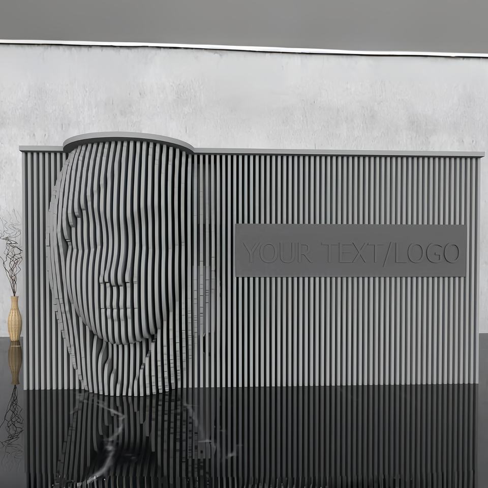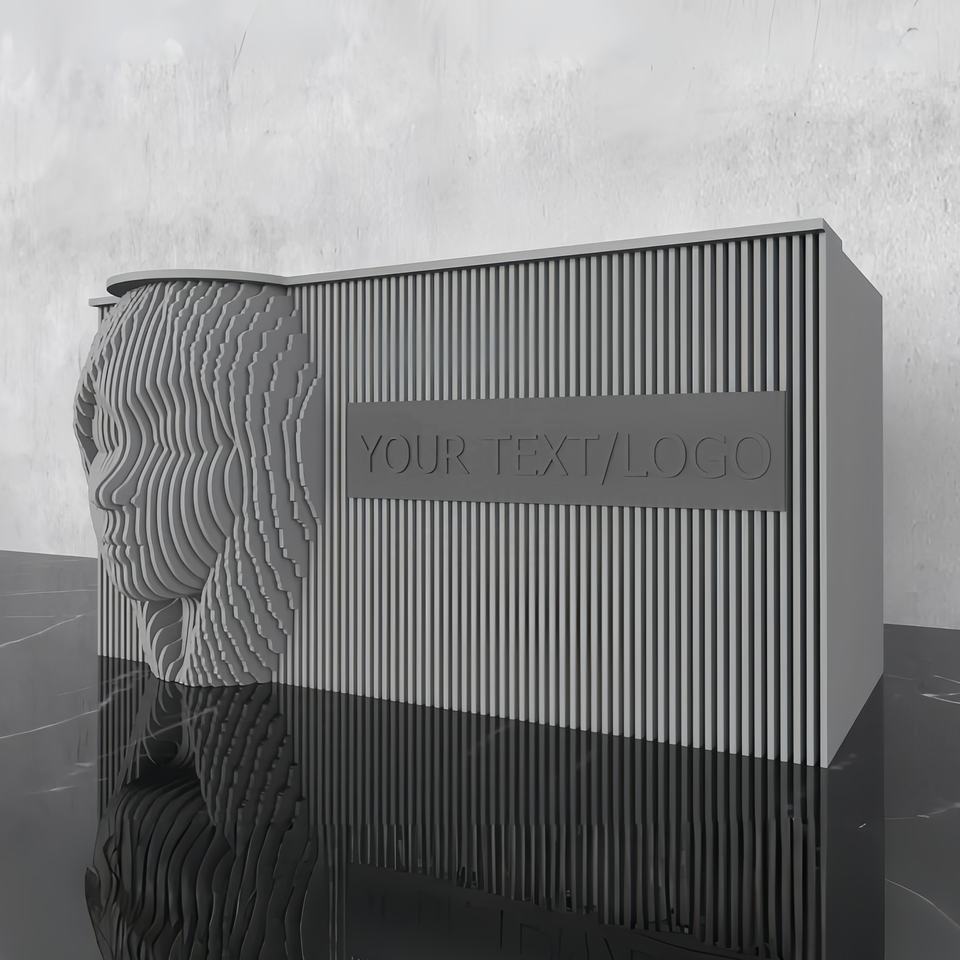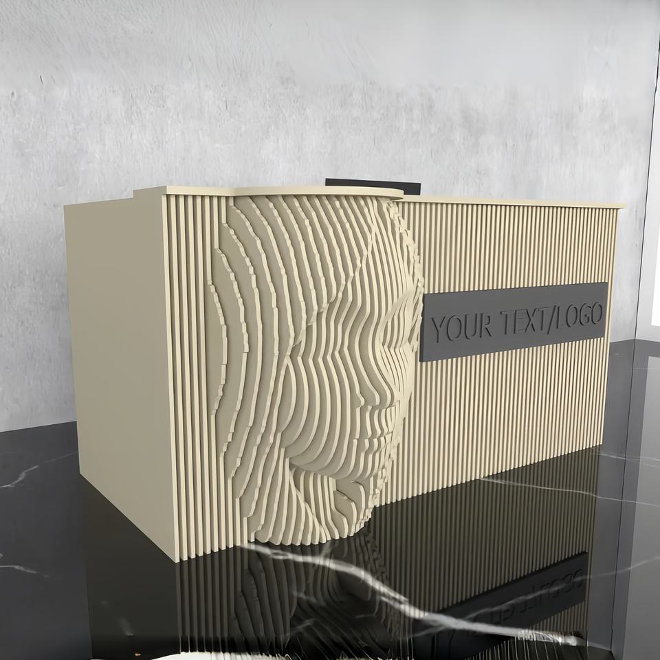 Mostrador de Recepción de Madera Maciza Pequeño con Textura Personalizada para Hotel y Clínica Dental, Mueble Comercial Moderno y Elegante