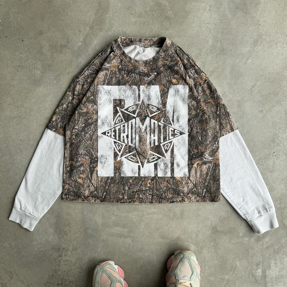 Camiseta de doble capa de gran tamaño de algodón térmico personalizada Camiseta de manga larga de moda Streetwear