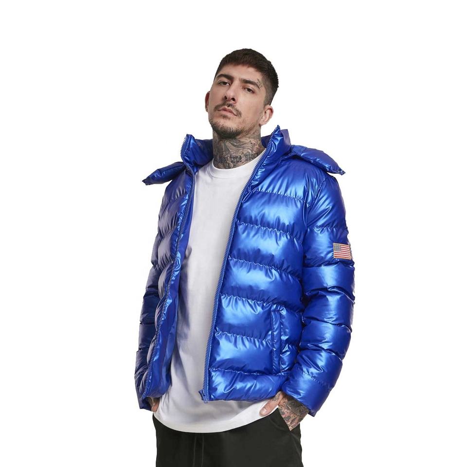 Chaqueta acolchada de piel de oveja impermeable de talla grande para hombre de invierno gruesa personalizada con cierre de cremallera y capucha