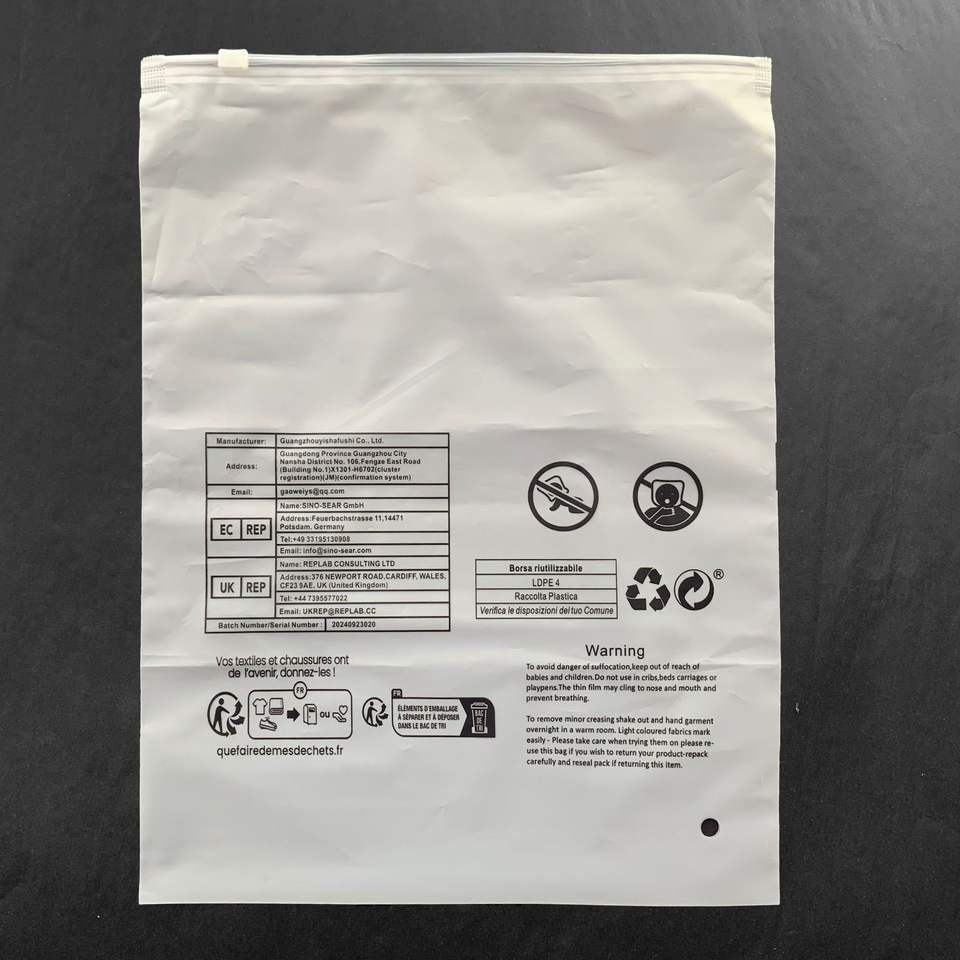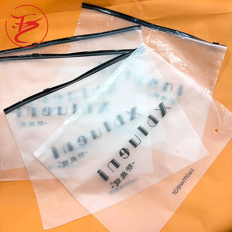 Bolsa de ropa con cierre hermético de plástico PE grueso personalizado, diseño esmerilado transparente con impresión de logotipo de ropa interior