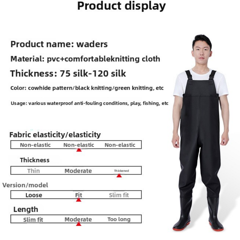 Chubasqueros de PVC gruesos personalizados, impermeable para el pecho, equipo de pesca, traje de ave zancuda, pantalones de lluvia con botas ajustables con pechera para actividades acuáticas