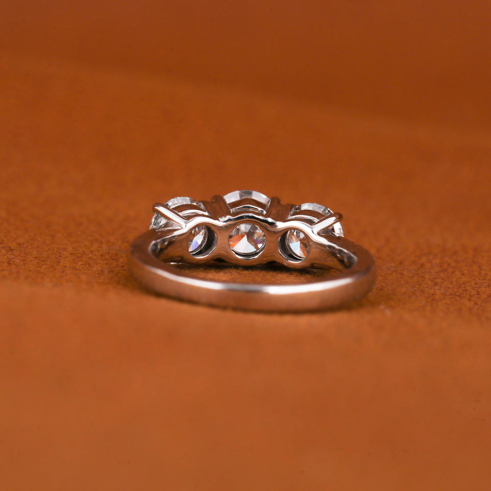 Anillo de compromiso de diamante cultivado en laboratorio de corte redondo de tres piedras personalizado, regalo de aniversario lujoso chapado en oro sólido de 10 quilates