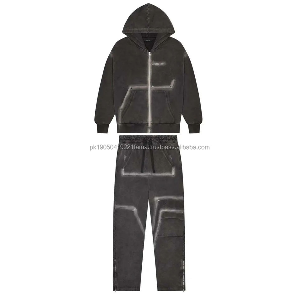 Conjunto Deportivo de Invierno para Hombre, Estilo Urbano, Tie-Dye, Lavado Ácido, 100% Algodón, Transpirable, Cortavientos, Sudadera con Capucha y Pantalones Deportivos