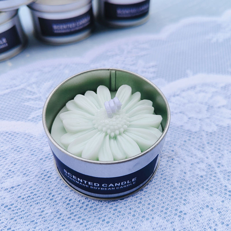 Vela perfumada con diseño de flores coloridas de hojalata personalizada con etiquetas privadas para el hogar Halloween Navidad Vacaciones