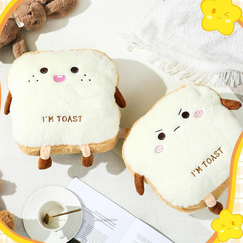 Cojín de felpa con forma de pan tostado personalizado, decoración de comida, cojín suave para sofá, tostadas en rodajas, habitación de felpa, cara feliz enojada, juguetes de peluche de pan