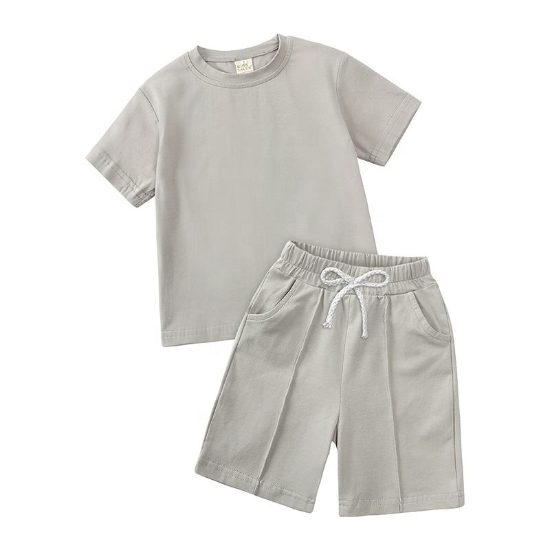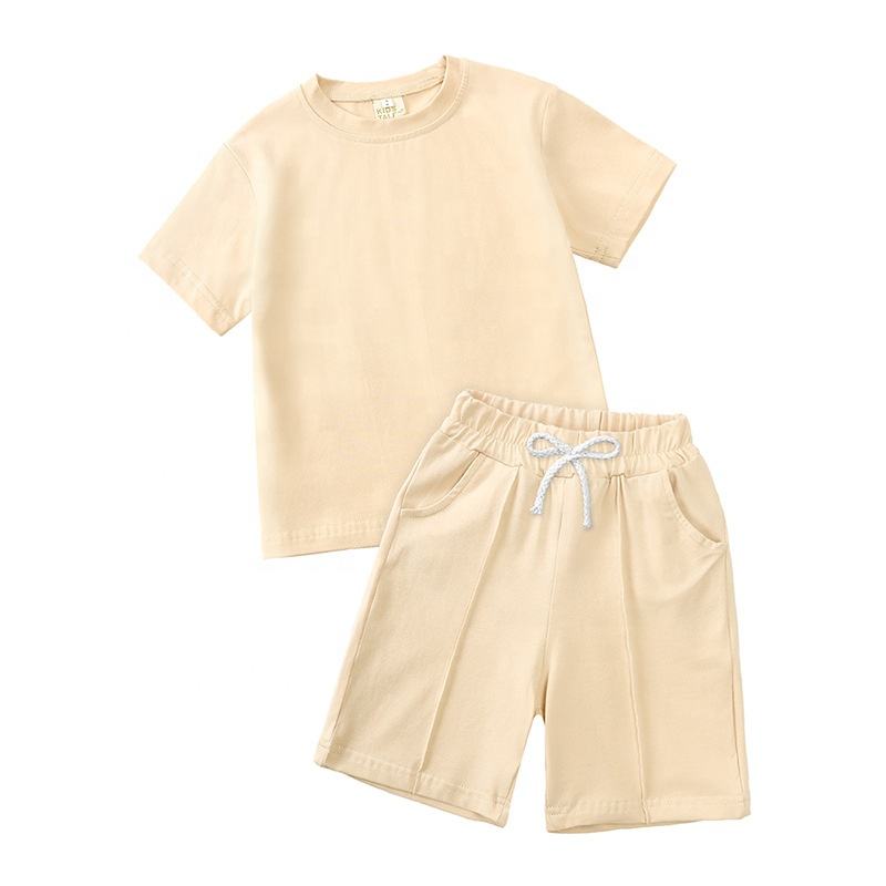 Conjunto de Verano de 2 Piezas para Niños Pequeños, Pantalones Cortos con Cordón de Ajuste, Tela de Algodón de Color Sólido, Personalizado