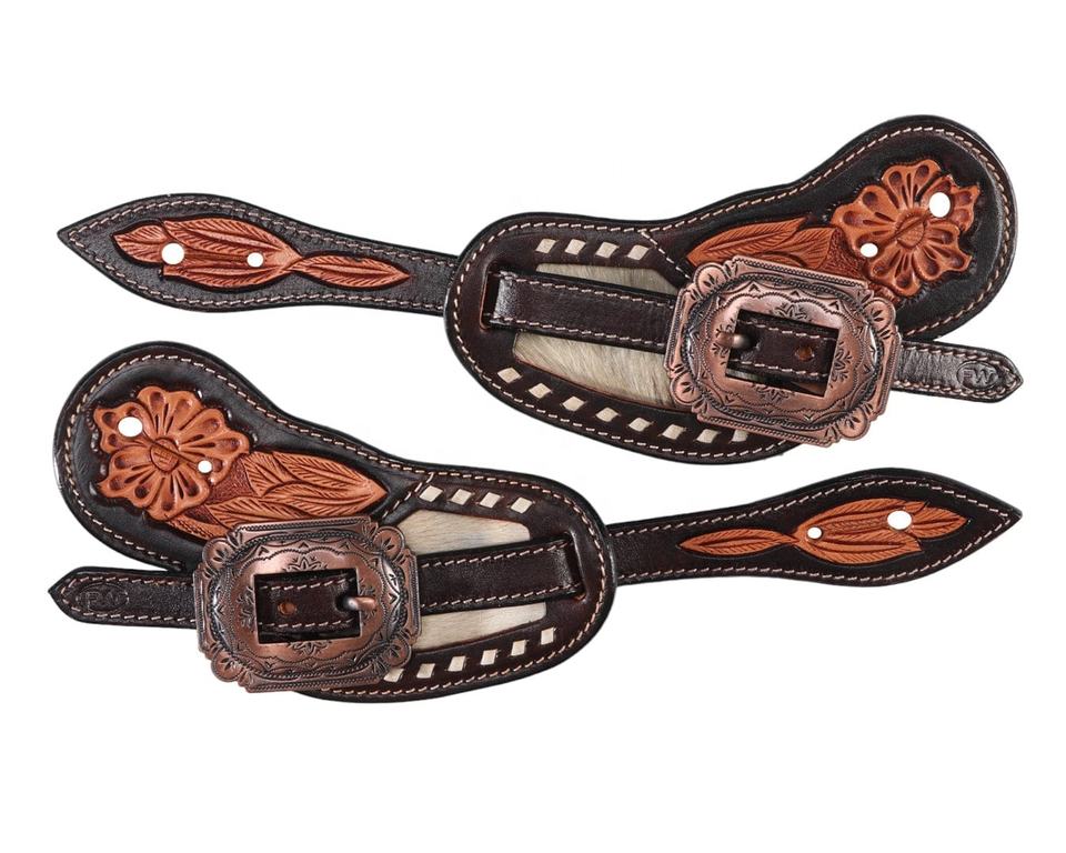 Silla de Montar Inglesa Multifuncional de Cuero Genuino Ligero y Personalizada con Correas de Espuelas con Cristales Incrustados - Equipo de Equitación