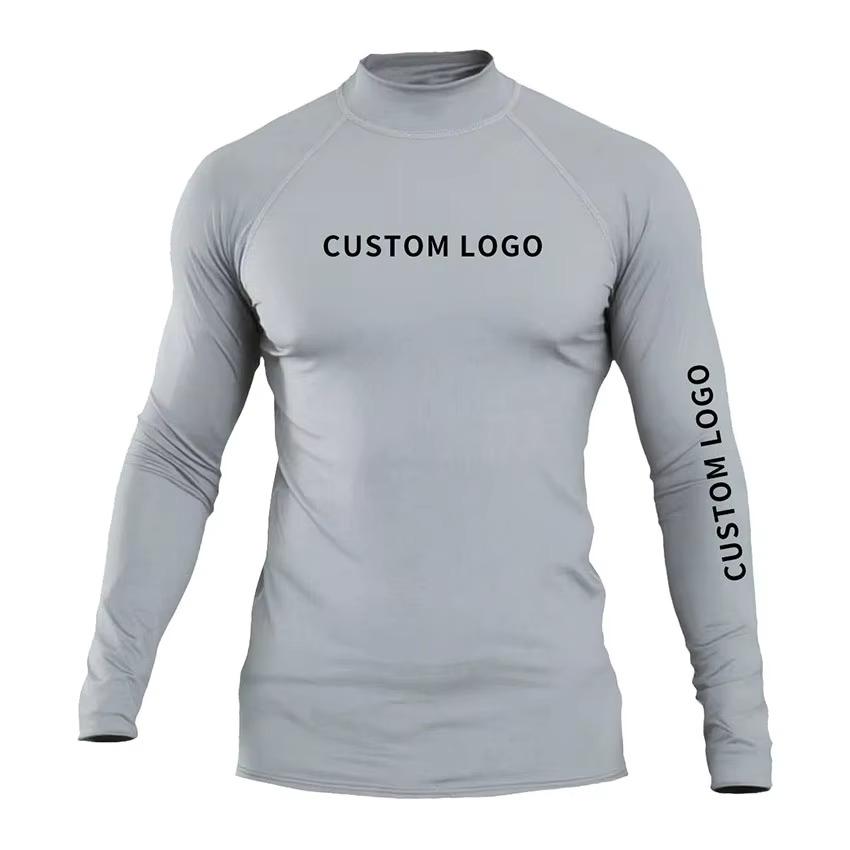 Camiseta de Compresión Personalizada de Alta Calidad para Hombre, Manga Larga, Secado Rápido, Cuello Alto, Diseño de Logotipo Personalizado, para Entrenamiento en el Gimnasio