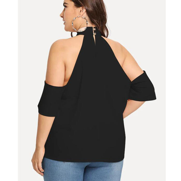 Blusa Halter de Punto Sólido Informal para Mujer, Talla Grande, con Logotipo Frontal, Transpirable para Verano, Superventas