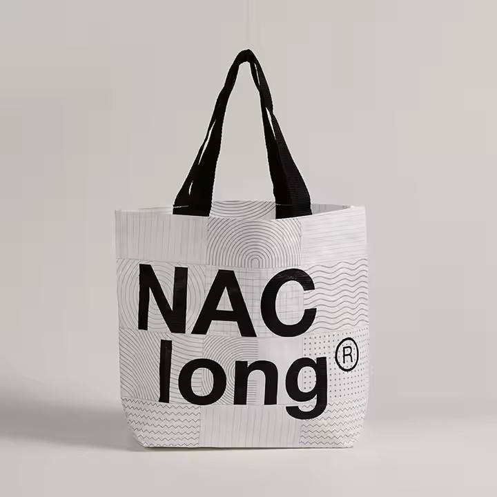 Bolsa de lona ecológica personalizada, cierre de cremallera de nailon reutilizable, Asa de hombro, uso al aire libre, logotipo laminado, tejido de PP personalizado