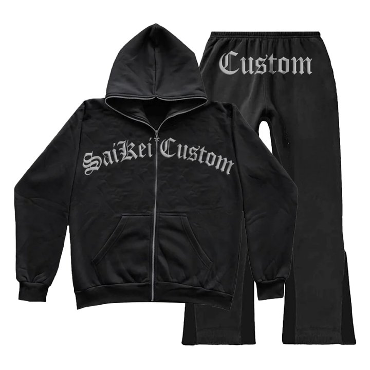 Conjunto Deportivo Personalizado de Alta Calidad con Logotipo, Pantalones Deportivos Anchos y Sudadera con Capucha para Hombre, 100% Algodón, Ecológico
