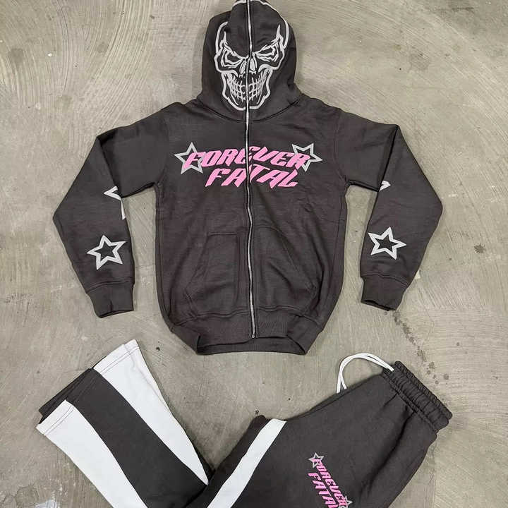 Conjunto de chándal personalizado con logotipo de alta calidad, conjunto de pantalones de chándal acampanados y Sudadera con capucha para hombre, conjunto de pantalones de chándal de algodón y sudadera con cremallera completa