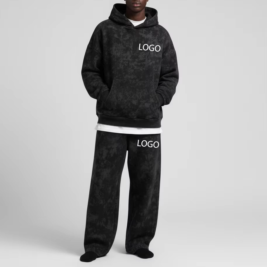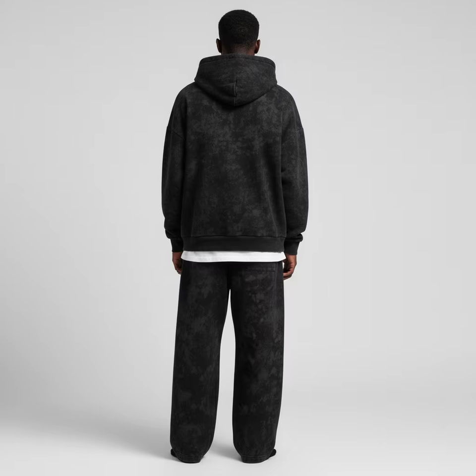 Conjunto de Sudadera con Capucha y Pantalones Acampanados Vintage con Estampado DTG Completo, Estilo Urbano, Unisex, para Invierno