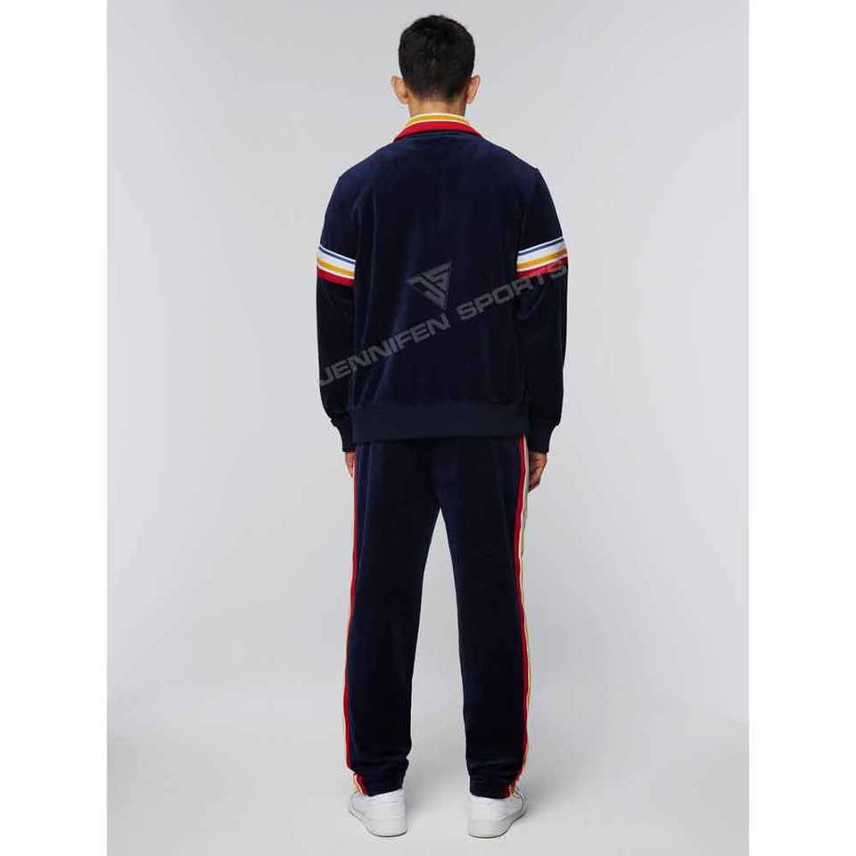 Sudadera con capucha y cremallera con logotipo personalizado, chándal de tela de terciopelo 100% de alta calidad para hombre, traje de entrenamiento holgado a rayas multicolor