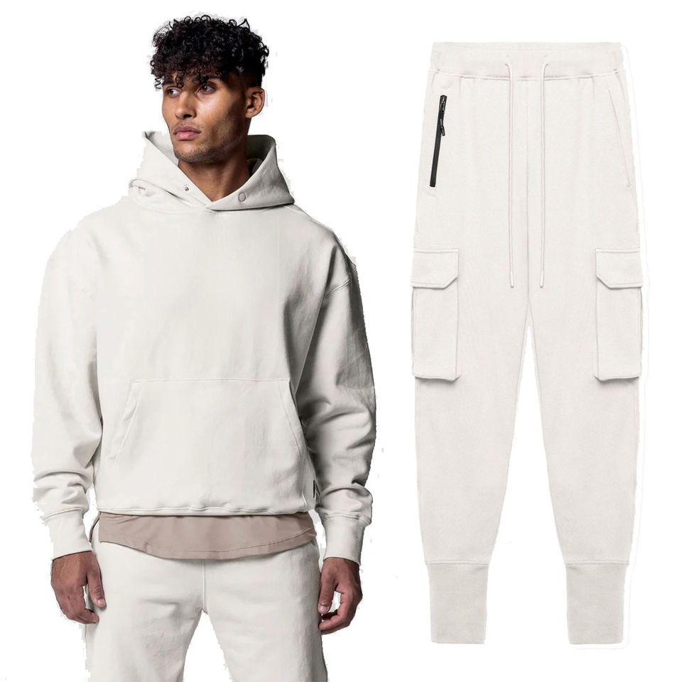 Personalizado Entrenamiento Jogging Bordado Chándal Hombres Slim Fit Algodón Cargo Sweat hombres Sudaderas con capucha y chándal Conjuntos hombres chándal conjunto