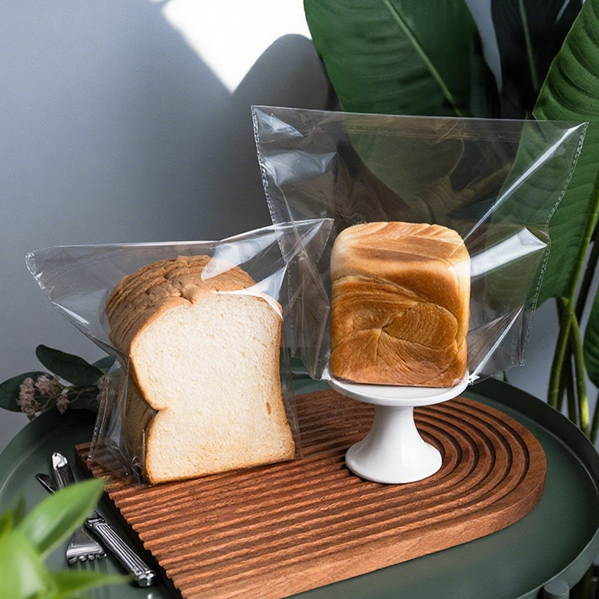 Bolsas de embalaje con fuelle lateral de HDPE transparentes personalizadas, sello autoadhesivo para sándwiches de sushi, productos horneados, ensaladas reciclables