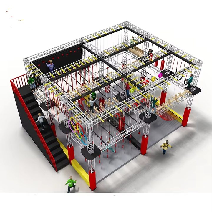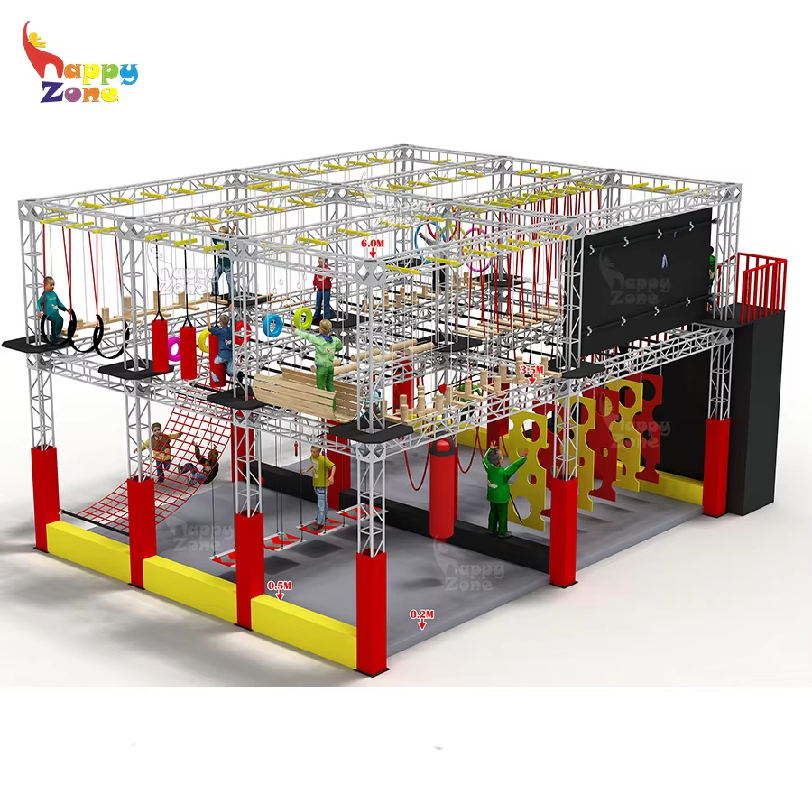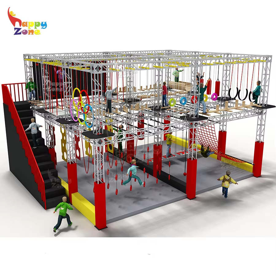 Carrera de obstáculos de Guerrero ninja de dos niveles personalizada con marco de armazón para entrenamiento en interiores de niños