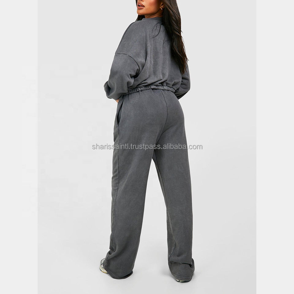 Traje de chándal de dos piezas con estampado de algodón descolorido para mujer