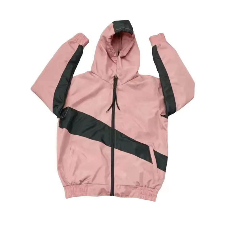 Conjunto personalizado de Chaqueta corta de dos piezas Patchwork Zip up Nylon Poliéster Streetwear Chándal Hombres Conjunto corto