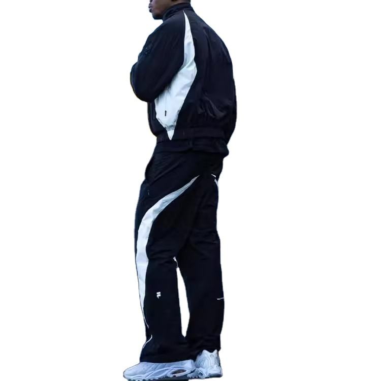 Conjunto de Chaqueta de Invierno de Poliéster de Dos Piezas con Diseño de Color Combinado, Chaqueta Cortavientos con Cierre y Bordado, Traje Deportivo para Hombre