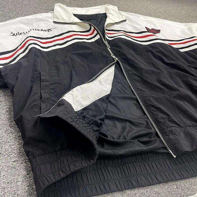 Conjunto de Chaqueta corta cortavientos de dos piezas personalizada, ropa de calle de nailon y poliéster con cremallera de retazos, conjunto corto cortavientos para hombre