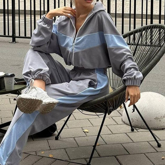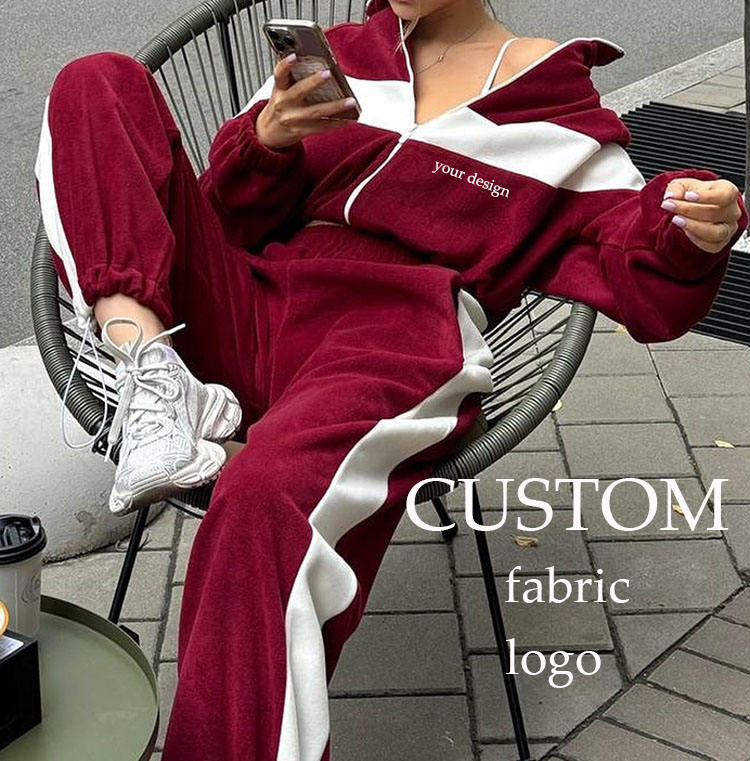 Conjunto Deportivo de Dos Piezas Personalizado para Otoño e Invierno, Chaqueta y Pantalones de Terciopelo con Cierre, Conjunto Deportivo con Sudadera con Capucha y Cierre