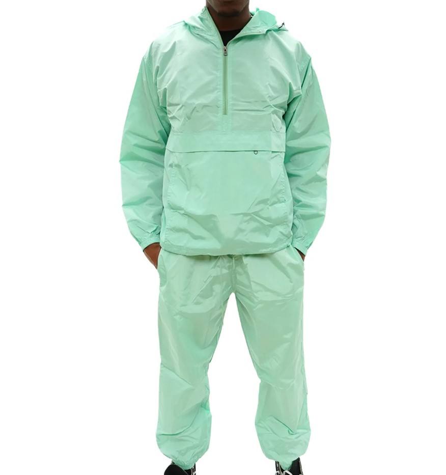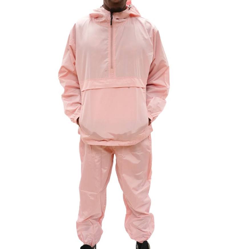 Conjunto deportivo de dos piezas personalizado, chaqueta tipo pullover con pantalones, conjunto de pantalones holgados y chaqueta cortavientos de nailon para hombre