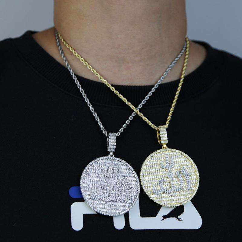 Colgante Personalizado de Dos Tonos con Diamantes y Moissanita, Plata 925, Redondo, Estilo Hip Hop Iced Out