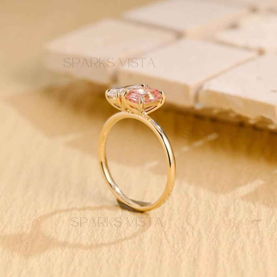 Anillo de Compromiso o Promesa de Dos Tonos Personalizado con Moissanita Creada en Laboratorio, Certificado por GIA, Regalo Único de Aniversario, Moda en Oro de 10K/14K/18K