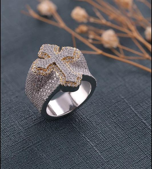 Anillo Cruzado de Diamantes de Moissanita Chapado en Dos Tonos Personalizado, Joyería Hip Hop de Lujo con Incrustaciones, Diseño Único para Hombre