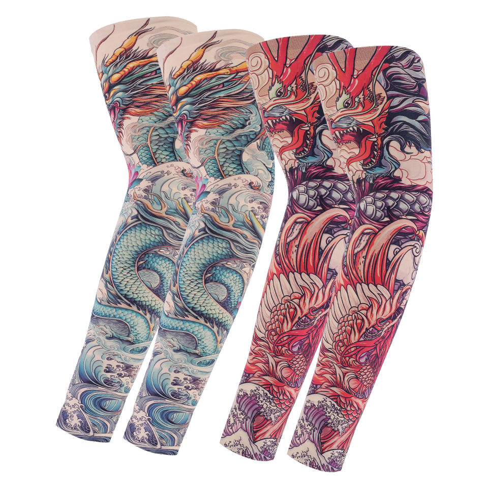 Protección UV personalizada Costura Ciclismo Brazo Tatuaje Mangas Transpirable Anti UV Sol Transpirable Tatuaje Hielo Brazo Mangas para Todos al aire libre