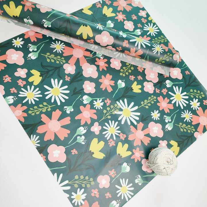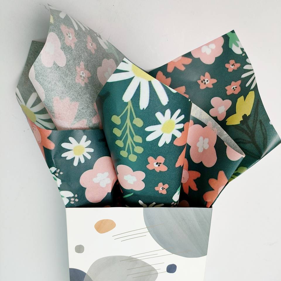Papel de seda de primavera con diseños florales coloridos únicos personalizados Papel de regalo de flores verdes retro Papel de seda a prueba de humedad