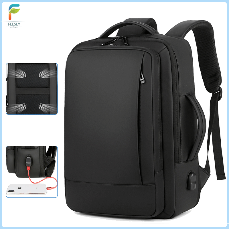 Mochila geométrica RFID personalizada unisex de 17 pulgadas con logotipo de alta calidad impermeable Oxford USB estilo de moda poliéster con cremallera escuela