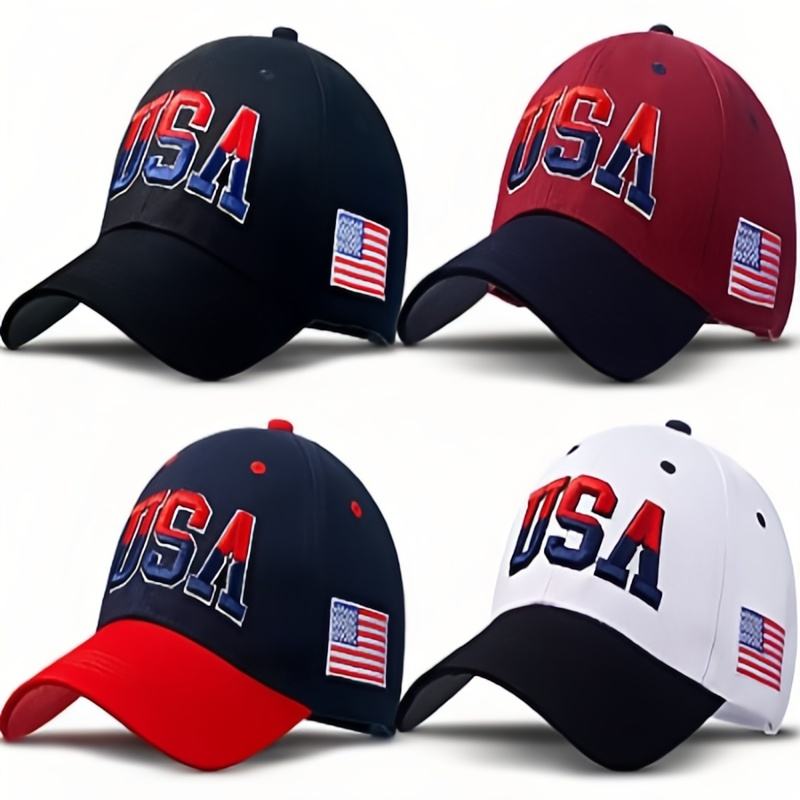 Gorra de Béisbol Unisex Personalizada de 6 Paneles, 100% Algodón, Bordado 3D, Gorra con Bandera Americana y Logotipo Personalizado