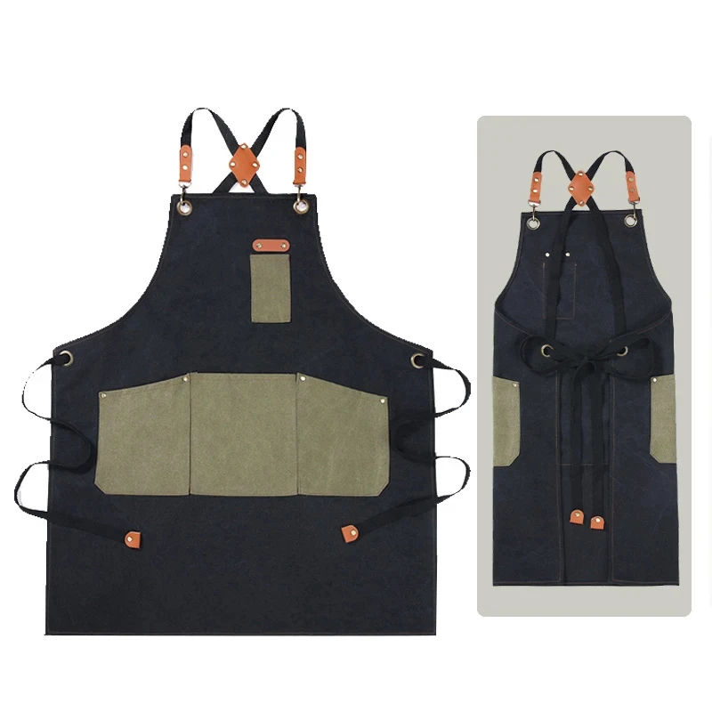 Delantal de cocina de algodón 100% ligero azul Unisex personalizado babero de cuerpo entero con correa duradero para uso en peluquería