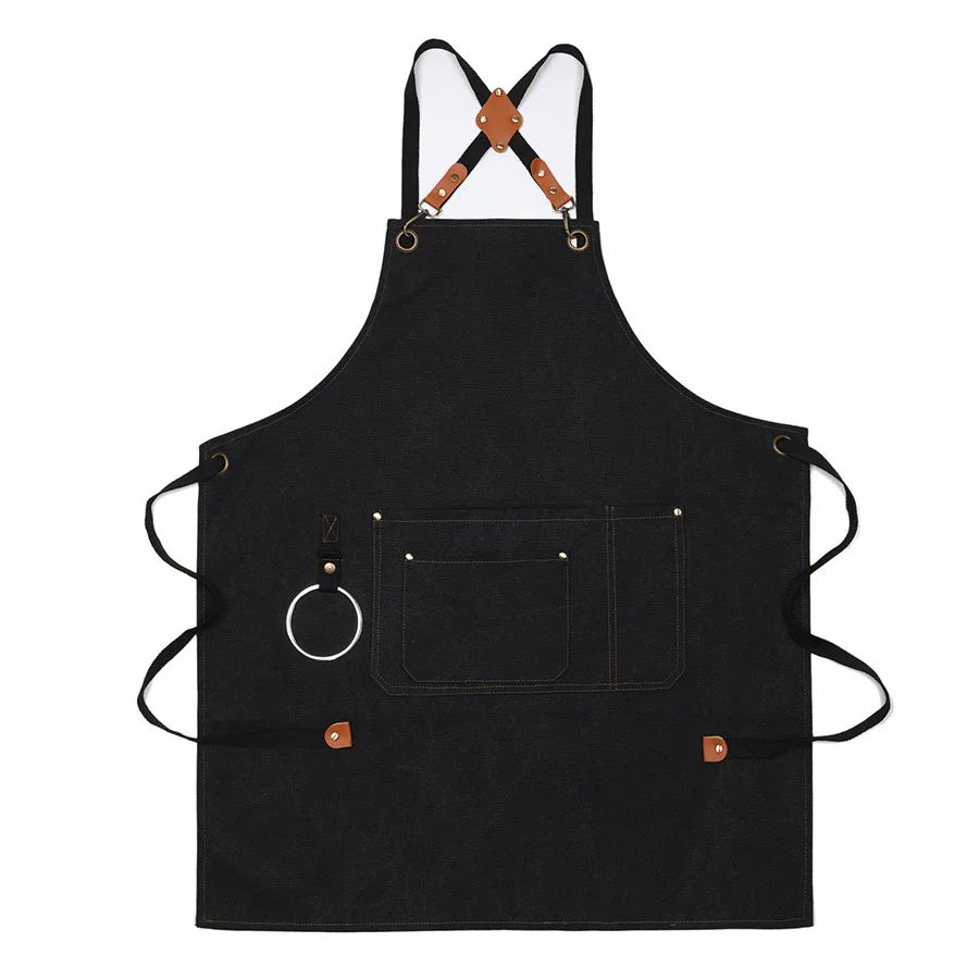 Personalizado Unisex Algodón Lona Babero Delantales Casual Sin Mangas Camarero Barista Uniforme para Restaurantes