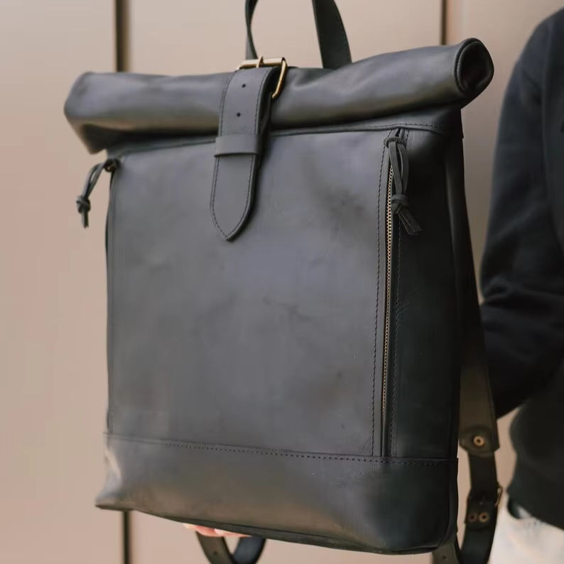 Product name:Leather Roll Top Backpack