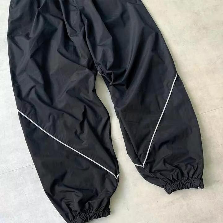 Conjunto de Pantalones y Chaqueta Cortavientos Unisex Personalizado, Oversize, Negro Reflectante, de Algodón y Poliéster, Tejido con Estampado, Teñido, para Primavera
