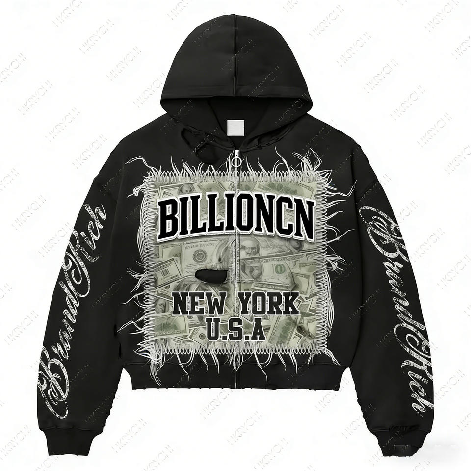 Sudadera con Capucha Personalizada Unisex de Corte Regular, Cuello Redondo, Gruesa, 360g, con Cierre, Estilo Veraniego, Desgastada, Vintage, Lavada al Ácido, 100% Algodón, con Estampado y Parche