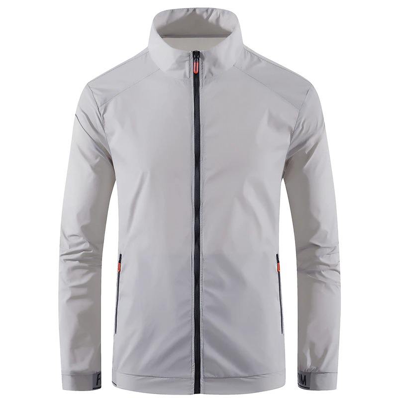 Chaqueta cortavientos fina reversible unisex personalizada con cremallera forro de poliéster reflectante a prueba de viento Anti-UV para ocio al aire libre