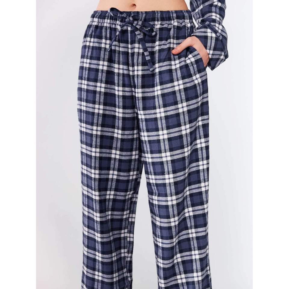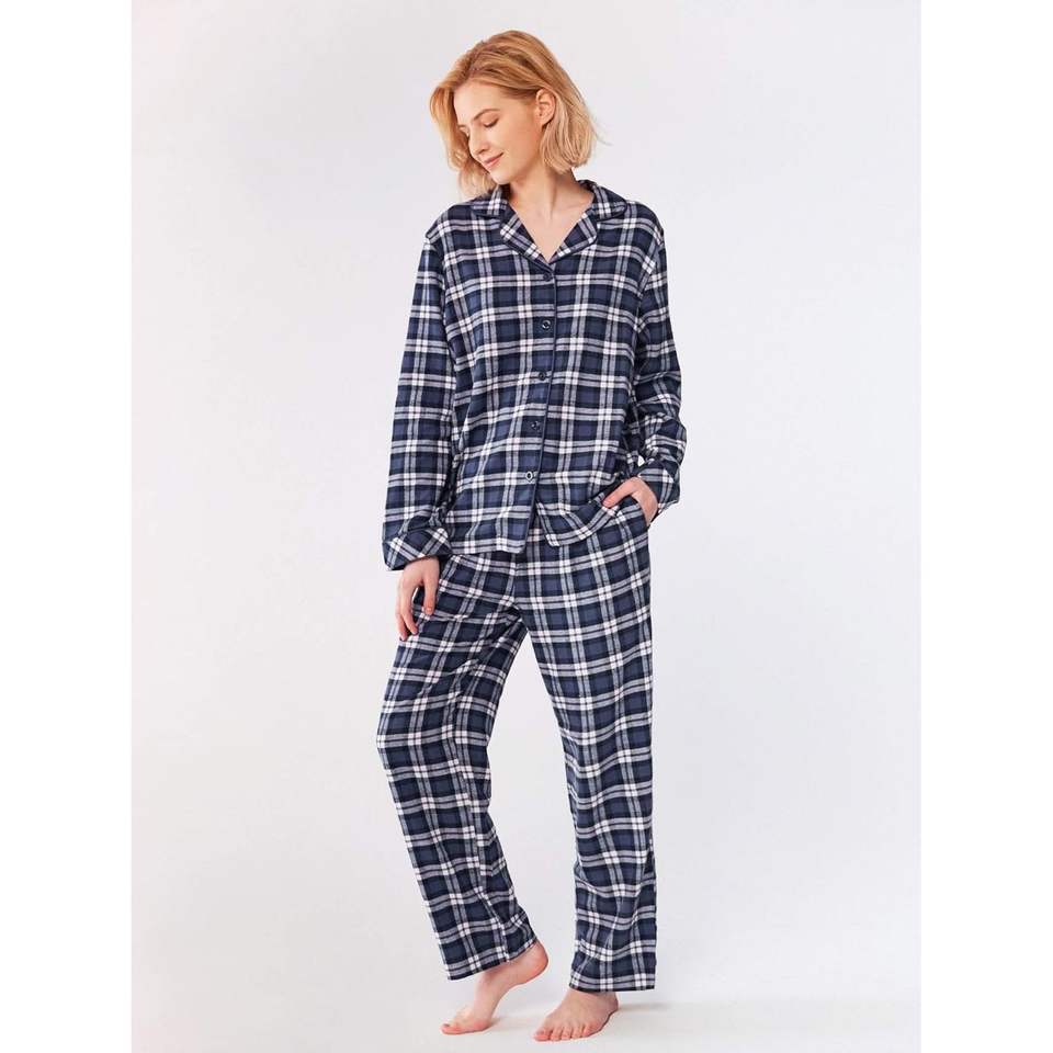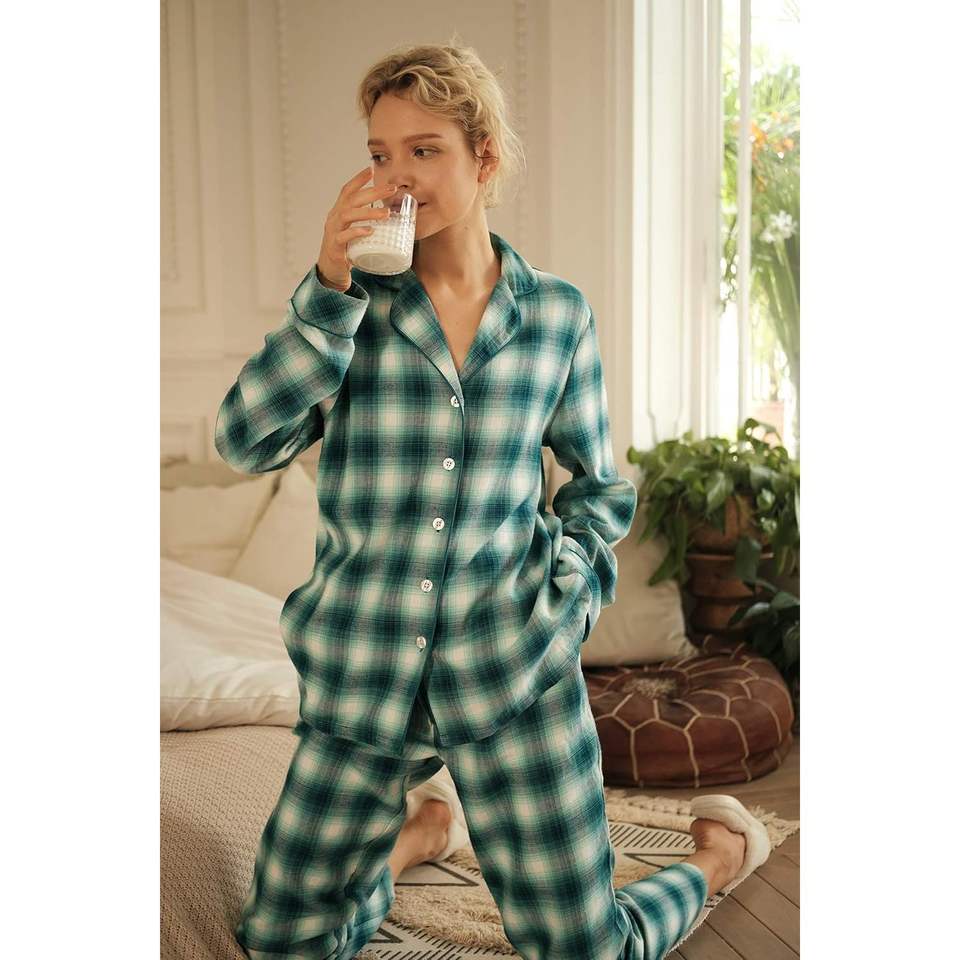 Conjunto de pijama personalizado para mujer, de franela a cuadros, manga larga, ropa de dormir suave y cómoda, conjunto de 2 piezas, pijamas 100% algodón