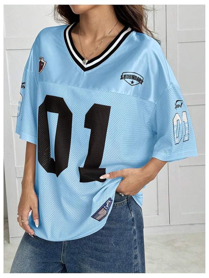 Ropa de calle de malla de media manga con cuello en V personalizada, camisetas gráficas sueltas, camisetas de gran tamaño, camiseta de baloncesto OEM transpirable sólida
