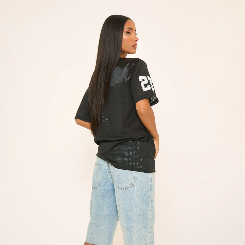 Camiseta con gráfico Y2K bordado con parche de Color y cuello en V personalizado, camiseta de manga corta de verano Vintage Sexy, camiseta de fútbol recortada