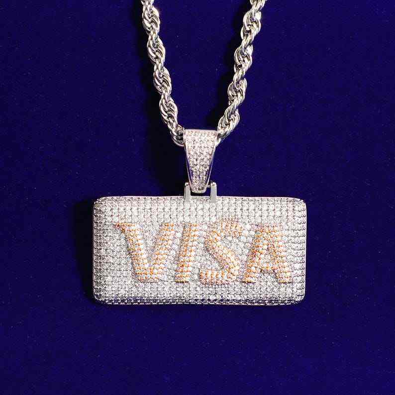 Colgante VISA Personalizado con Incrustaciones de Moissanita, Joyería Hip Hop, Cadena de Lujo, Pieza Destacada para Fiestas