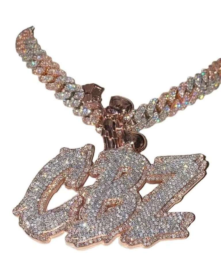 Colgante de Moissanita con Corte Brillante Redondo y Engaste de Bisel con Letra VVS Personalizada, Chapado en Plata 925, Estilo Hip Hop, Joyería Iced Out para Fiesta