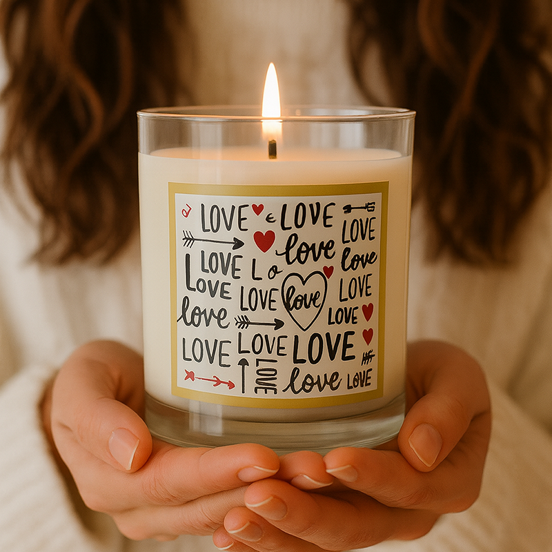 Velas personalizadas de cera de soja para el Día de San Valentín, tarro de 7oz, diseño romántico, vela perfumada, boda, fiesta, decoración del hogar, regalo de Navidad, Diwali