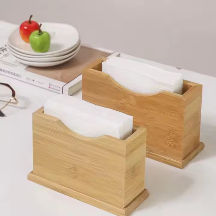 Contenedor de bambú personalizado de varios estilos, caja de pañuelos con logotipo, contenedores de almacenamiento de servilletas de Venta caliente sólidos naturales para oficina en casa