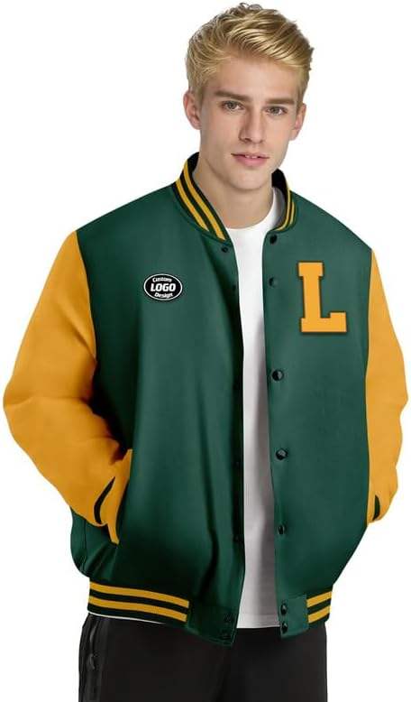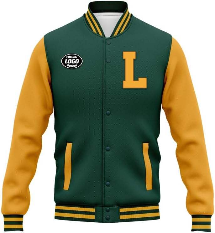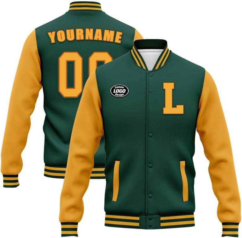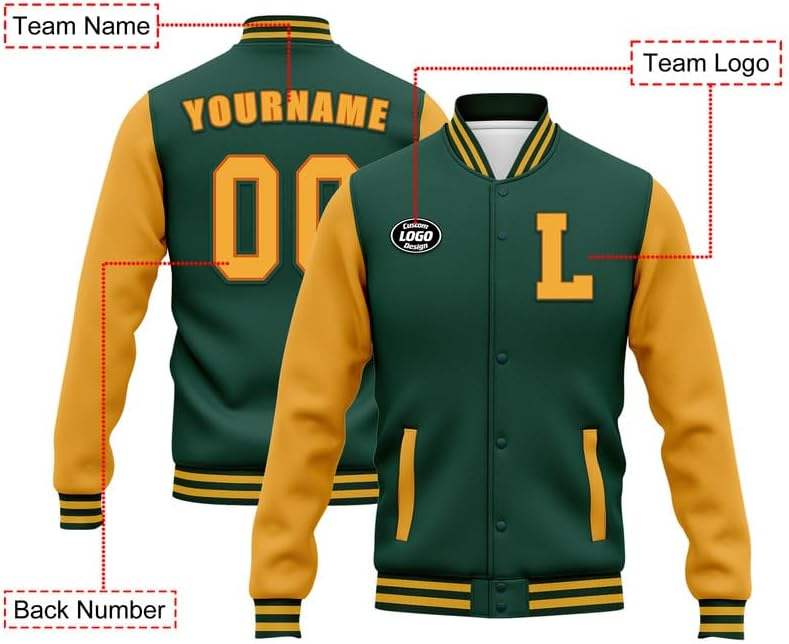 Chaqueta universitaria personalizada con nombre, número y logotipo del equipo bordado, diseño sublimado para mayor comodidad y estilo