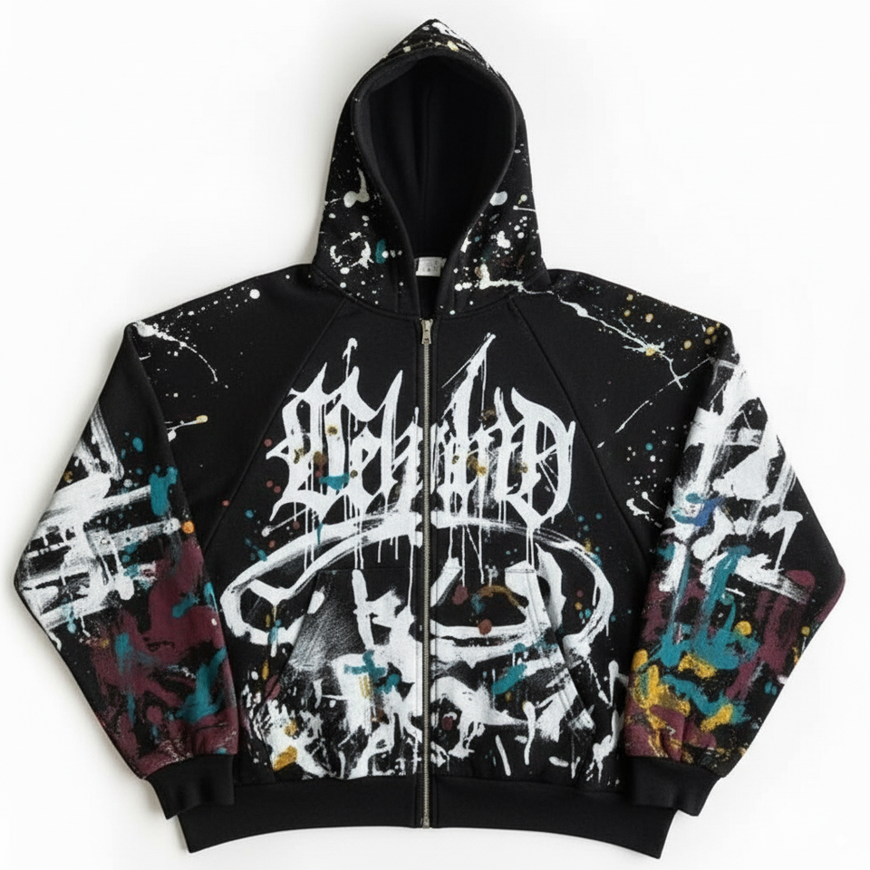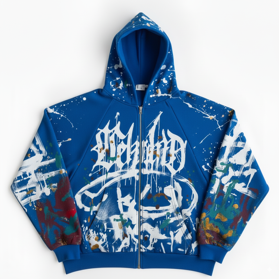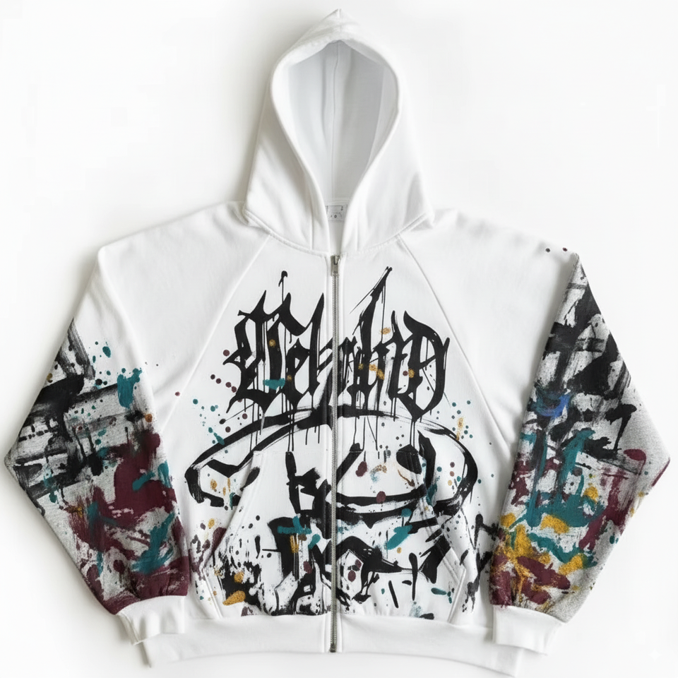 Custom Vintage 100% Poliéster French Terry Heavy Oversized Boxy Fit Ácido Lavado DTG Impresión Zip-Up Remache Invierno