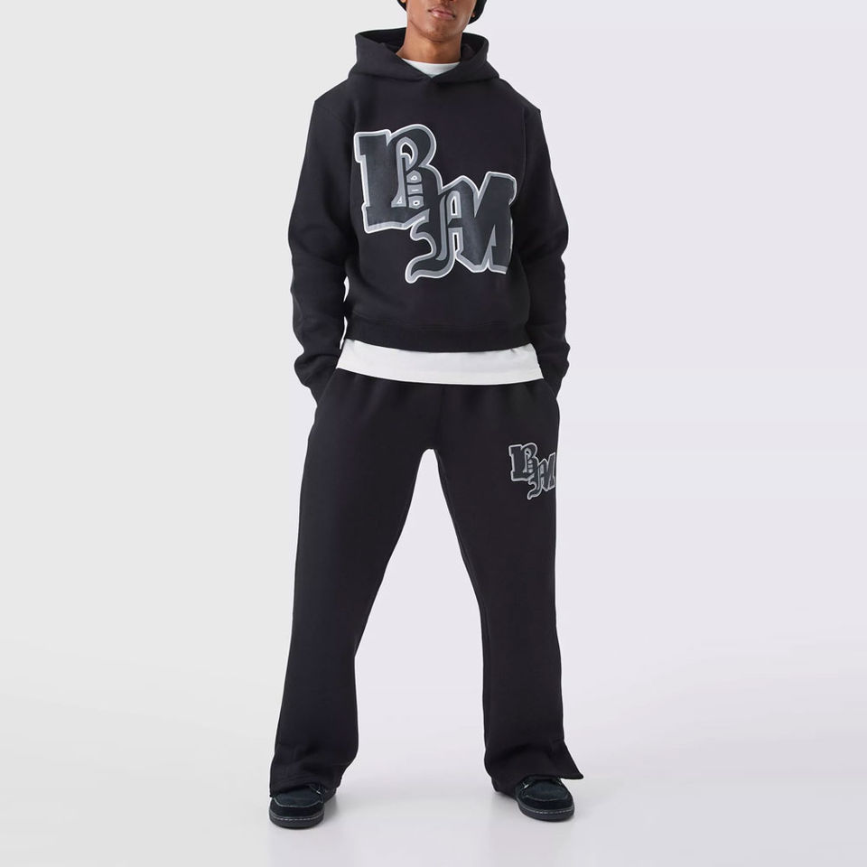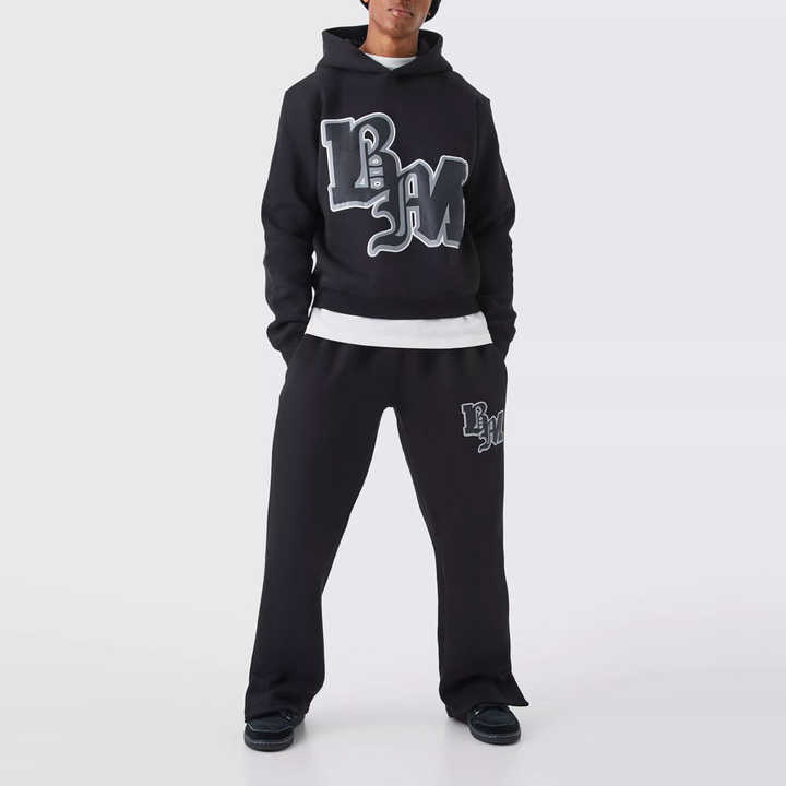 Conjunto Deportivo Vintage Personalizado con Estampado Serigrafiado, Traje Deportivo con Efecto Lavado Ácido, Sudadera con Capucha y Pantalones Deportivos Rectos y Acampanados para Hombre